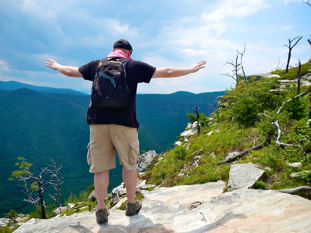 DSCN0660 Published July 12, 2013 at 1280 × 960 in Shortoff Mountain: Wolf Pit Road, MST and Edge-of-the-Earth Olsen Trail ← Previous Next → Balancing over the south rim of the Linville Gorge Shortoff Trail and Linville Gorge