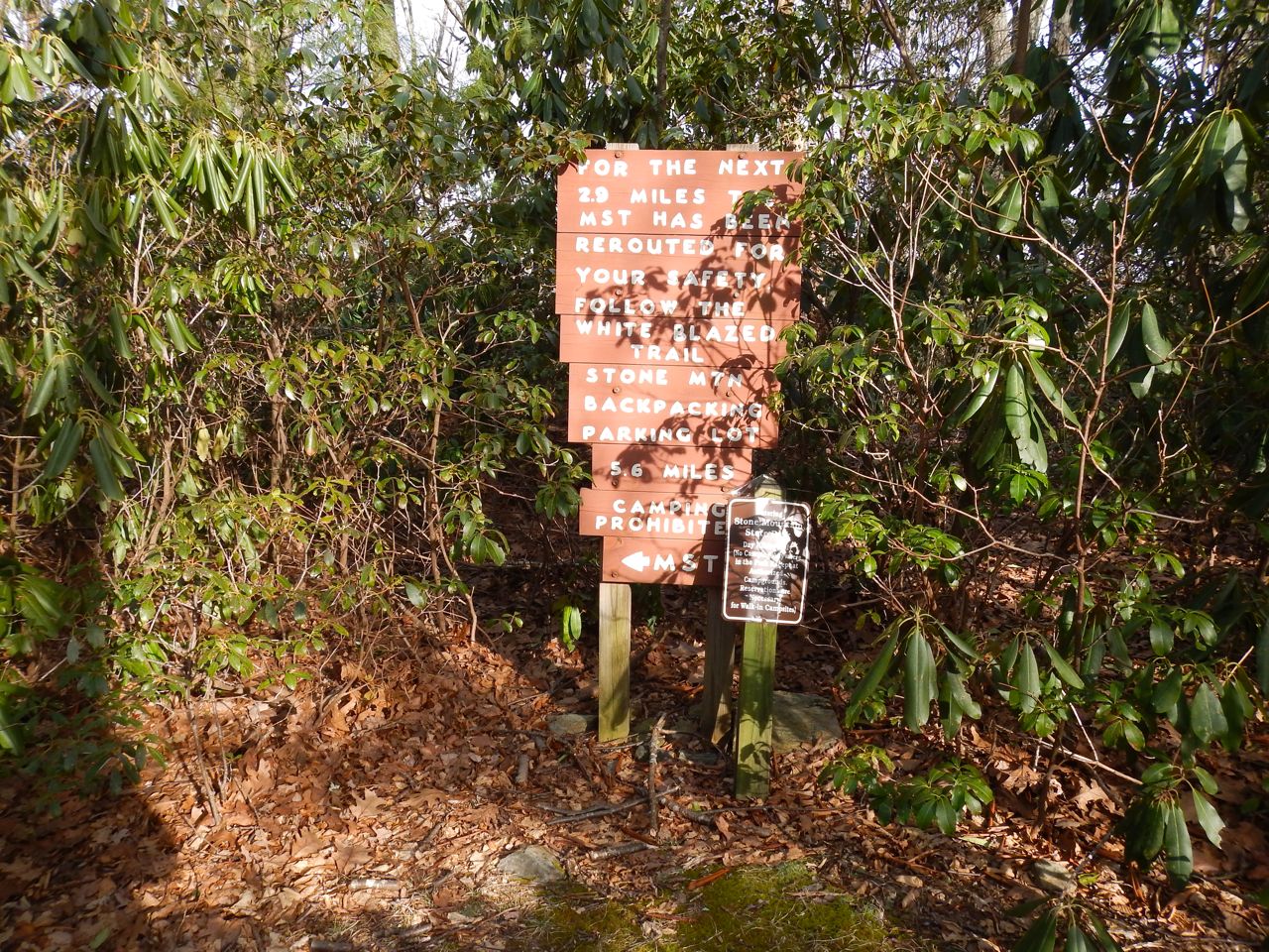 MSTsign_Parkway Published February 21, 2014 at 1280 × 960 in Widow’s Creek Falls and the MST at Stone Mountain, NC ← Previous Next → The sign where you want to turn right to go to the Parkway and go straight to see the cable car platform MST sign